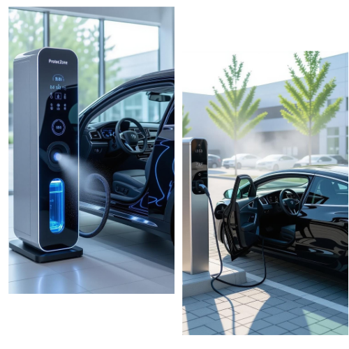 ProTecZone introduces a revolutionary approach to vehicle hygiene and safety. Our automated disinfection stations operate like modern petrol pumps — simply drive in, get disinfected, and drive out within minutes. Each station combines advanced UV sterilization, dry mist disinfectants, and air purification to ensure complete cabin and surface protection.